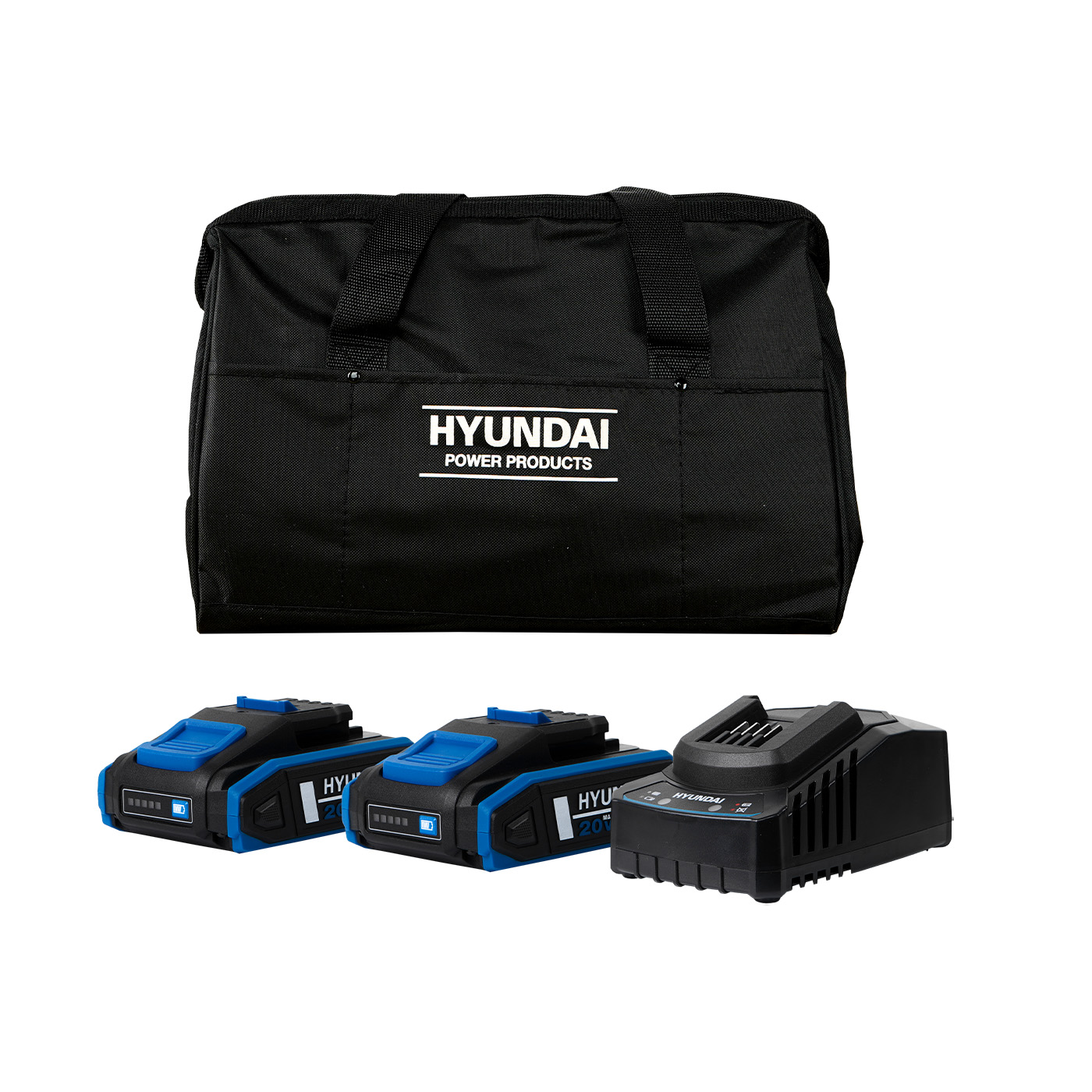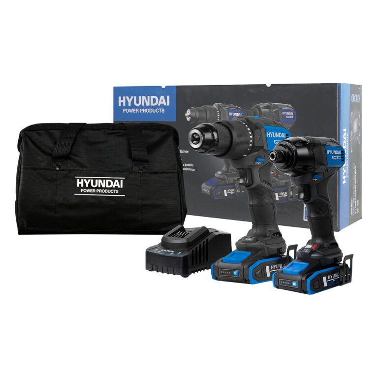 Kit de herramientas inalámbricas brushless que contiene 1 taladro de impacto de 1/2 pulgada y 1 atornillador de impacto de 1/4 pulgada 20v marca HYUNDAI. Cumplen con la norma NOM-003-SCFI. Con velocidad variable y luz LED. Tiempo de carga 2.0 Ah (1 hora). Tiempo de carga 4.0 Ah (2 horas). Tecnología LI-ION. Cargador 127v (60 Hz) / 240v (50 Hz). Incluye: 2 baterías Li-Ion de 2.0 Ah, 1 cargador de baterías de 2A, 2