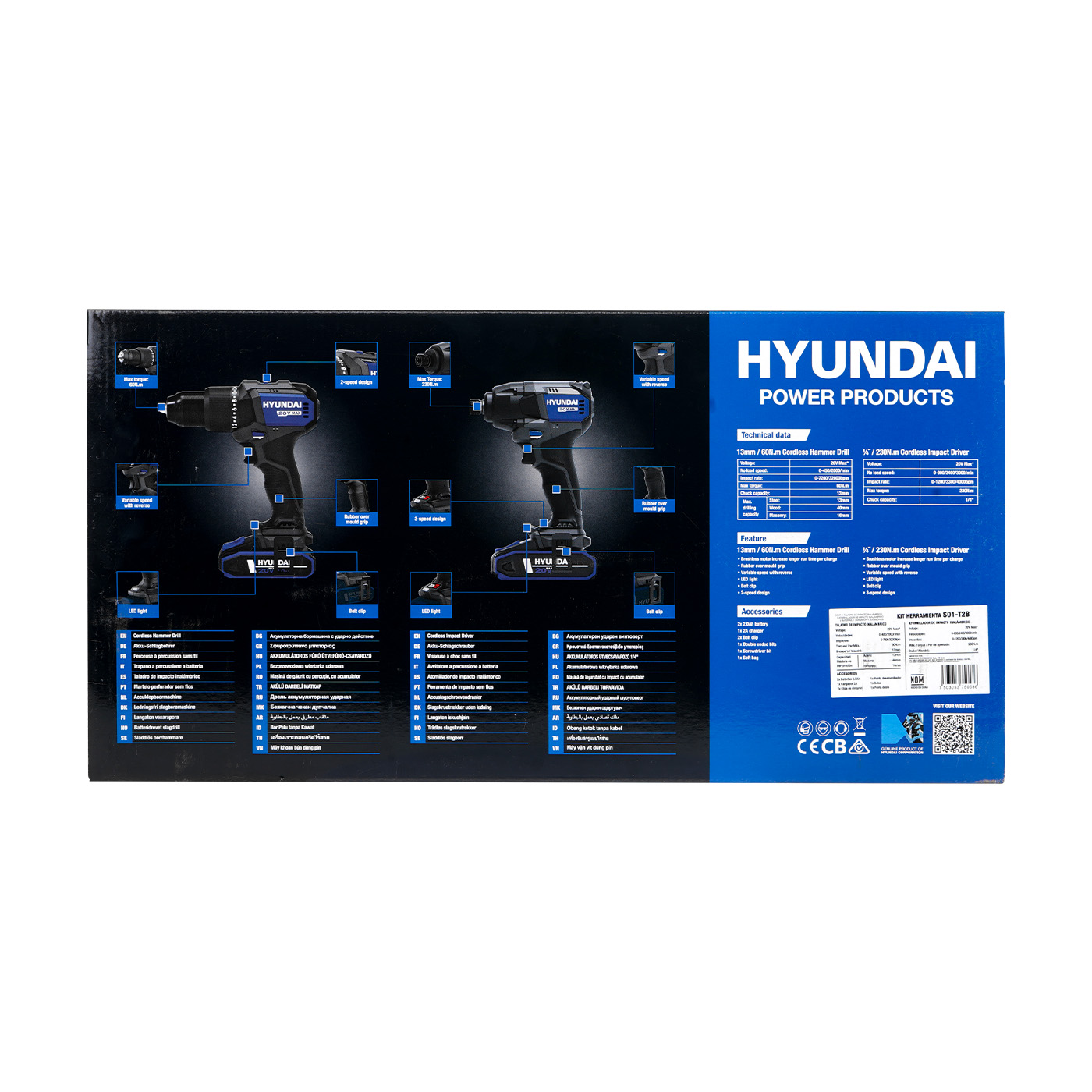 Combo Taladro De Impacto 1/2″ Y Atornillador De Impacto 1/4″ Hyundai 20v Li-Ion C/Accesorios – S01-T2B