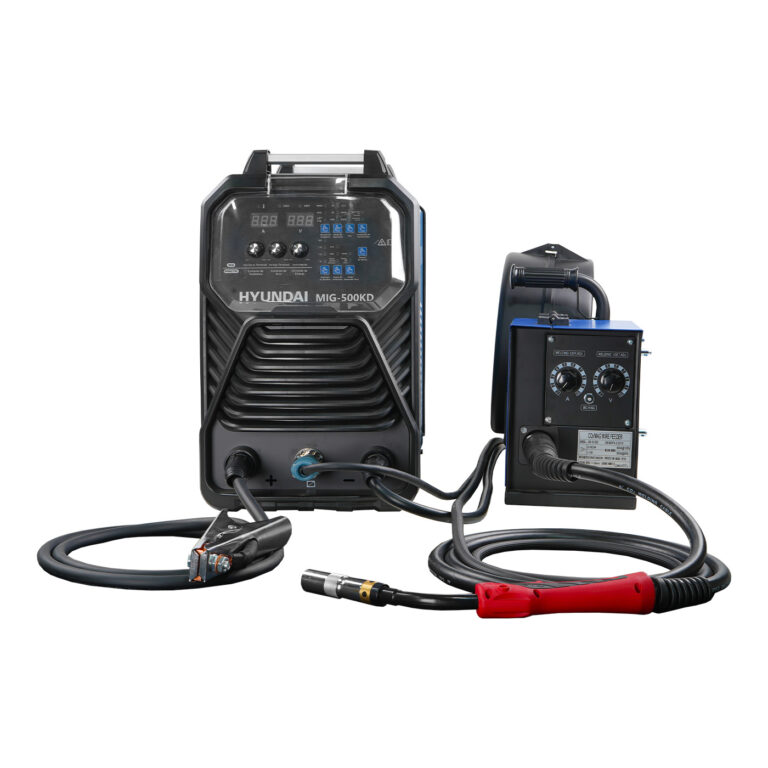 Soldadora Inverter para uso Industrial con doble voltaje y función MMA/MIG marca HYUNDAI. El dispositivo de potencia IGBT con modo de control único mejora la fiabilidad de la máquina. El alto ciclo de trabajo garantiza un funcionamiento prolongado. Tensión y corriente de soldadura ajustables, excelente rendimiento de soldadura. Adopción de un circuito de control de características dinámicas de soldadura único en MIG, arco estable, pocas salpicaduras, hermoso cordón de soldadura, alta eficiencia.